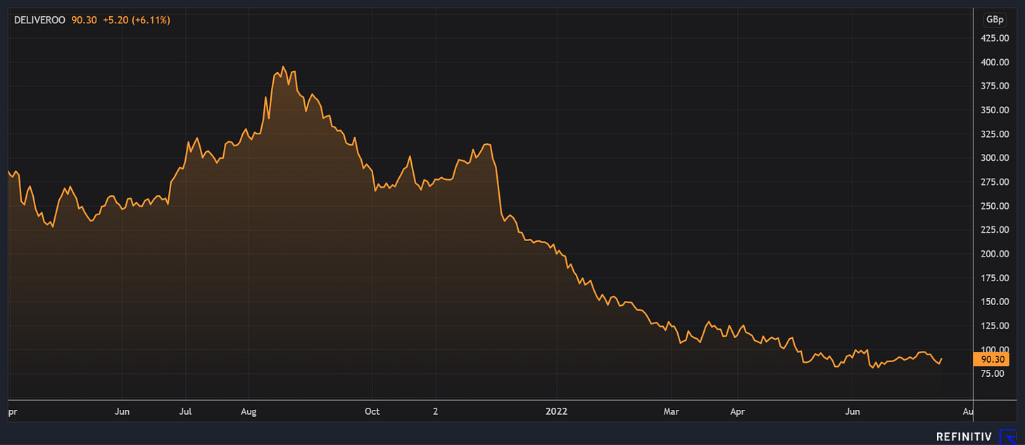 Deliveroo said in a trading update this morning that gross transaction value - the value of orders on the takeaway app - rose just 2 per cent year-on-year in the second quarter of 2022. The company said it was now forecasting growth of 4 per cent to 12 per cent for the year as a whole compared to 15 per cent to 25 per cent previously. This hit for Deliveroo looks to be clear evidence of households cutting back on spending amid a cost of living squeeze.